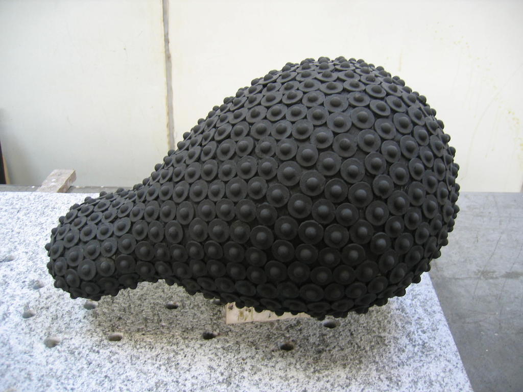 Die Formen der 13 Skulpturen bleiben sich gleich, jedoch die Strukturen der Oberflächen verändern sich und sind beeinflusst durch den Eigen-Charakter des gewählten Materials.